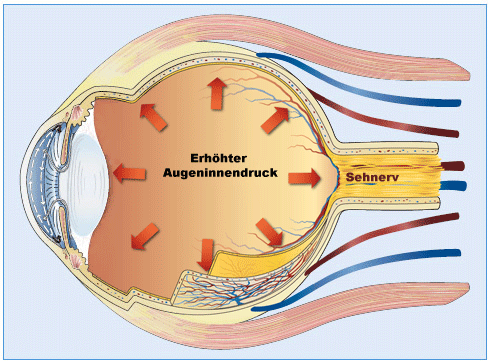 Der Augenarzt misst den Augeninnendruck als wichtigen Risikofaktor. Ergänzende Untersuchungsmethoden sind die Messung der Hornhautdicke, die Gesichtsfeldprüfung (Perimetrie), die dreidimensionale Vermessung des Sehnervenkopfs mittels Scanning-Laser Tomographie.